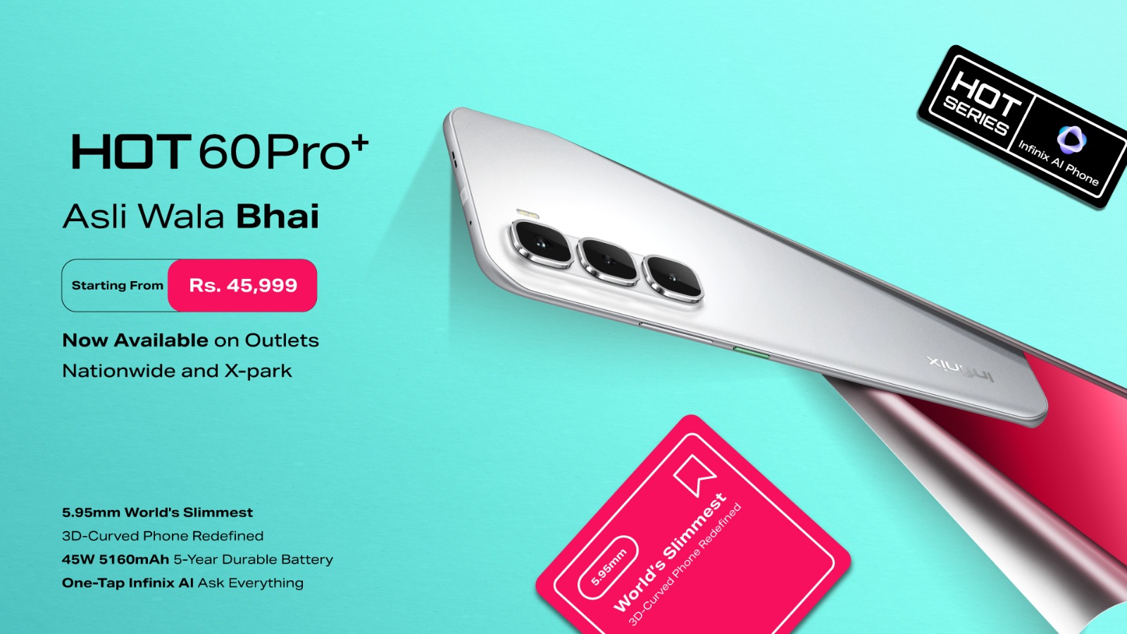 Infinix, Pakistan’s leading smartphone brand, has once again set a global benchmark in mobile innovation with the launch of the HOT 60 Pro+, the world’s slimmest curved screen smartphone. Measuring an astonishing 5.95mm, this masterpiece not only breaks a Guinness World record for slimness but also redefines how sleek design and advanced technology can come together in a truly next-generation device. Priced at PKR 59,999/- only the HOT 60 Pro+ is now available online through Xpark and offline at all outlets.
