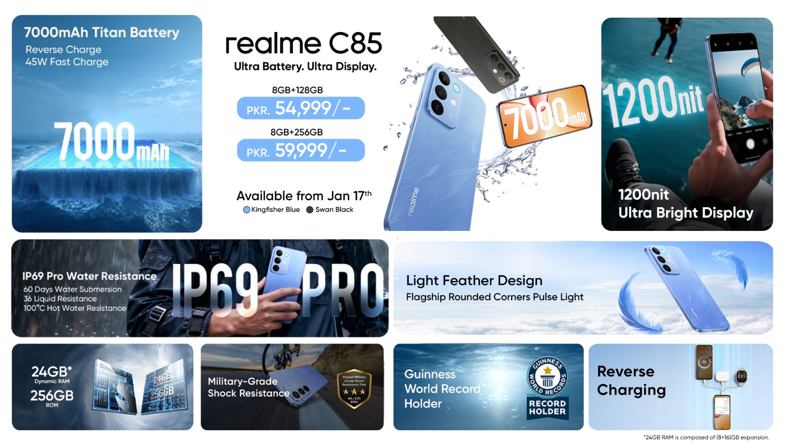 The realme C85 will be available in Pakistan in two storage variants: 128GB at PKR 54,999 and 256GB at PKR 59,999, ensuring users can choose the model that best fits their needs.